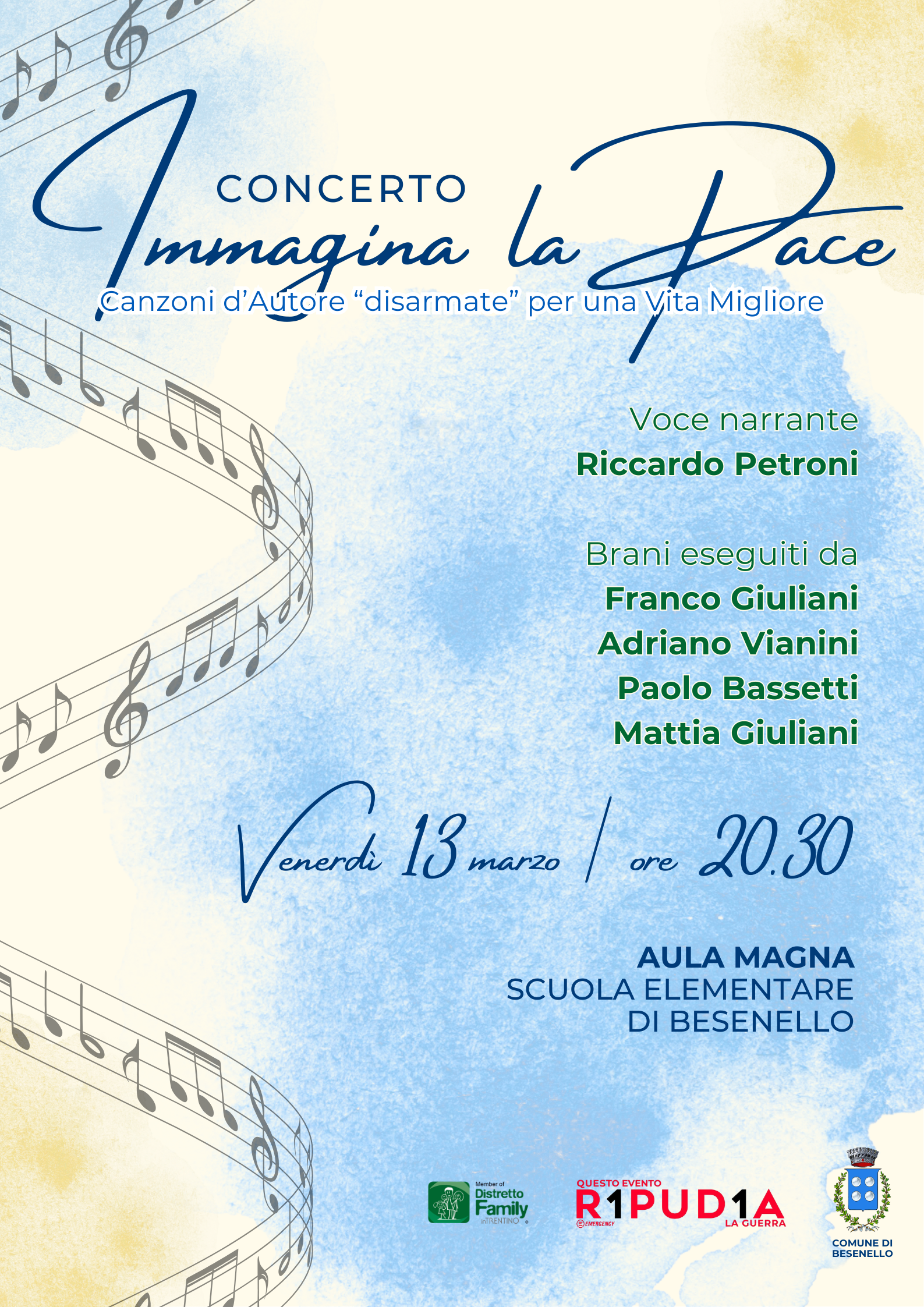 Il Maestro Franco Giuliani (musicista, compositore, fondatore e primo Presidente della Scuola Musicale Jan Novak di Villa Lagarina, Professore di chitarra per oltre 40 anni e mandolinista) e i musicisti roveretani Adriano Vianini, Paolo Bassetti e Mattia Giuliani eseguiranno dal vivo brani di artisti come De Andrè, Tenco, Gaber, Theodorakis e molti altri, come stimolo per continuare a parlare di Pace, anche attraverso la musica.