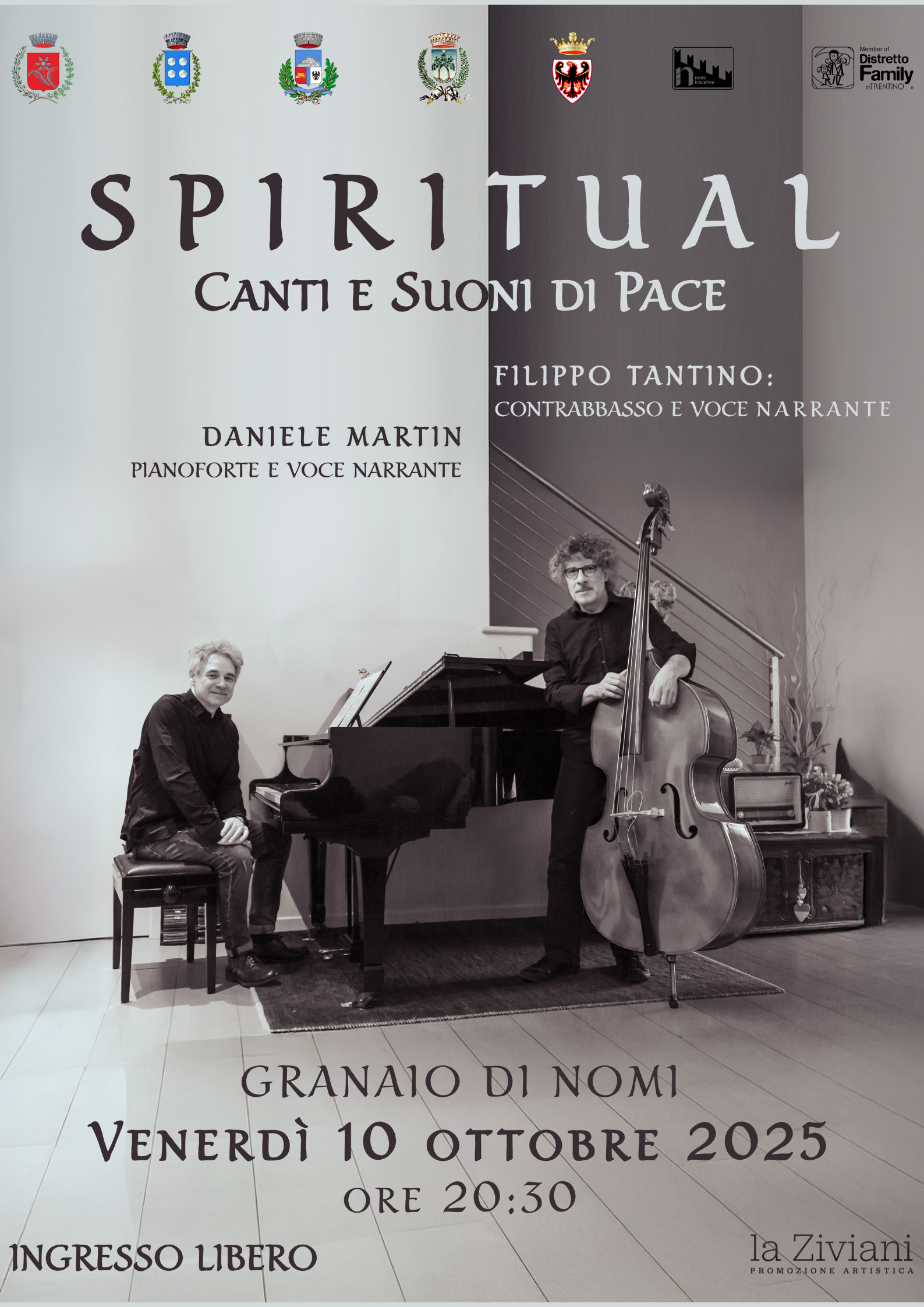 Nella splendida cornice del Granaio di Nomi, in Piazza Cesare Battisti, Daniele Martin al pianoforte e Filippo Tantino al contrabbasso affronteranno un viaggio emozionante tra musica e parole per raccontare le origini degli spiritual e del gospel, nati nei secoli bui della schiavitù afroamericana. Un omaggio a “il più grande dono del popolo nero”, un canto di libertà, amore e pace che ancora oggi parla al cuore di tutti.
